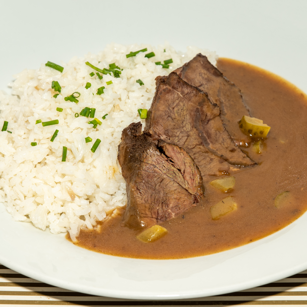 Znojemská hovězí pečeně  s dušenou rýží.