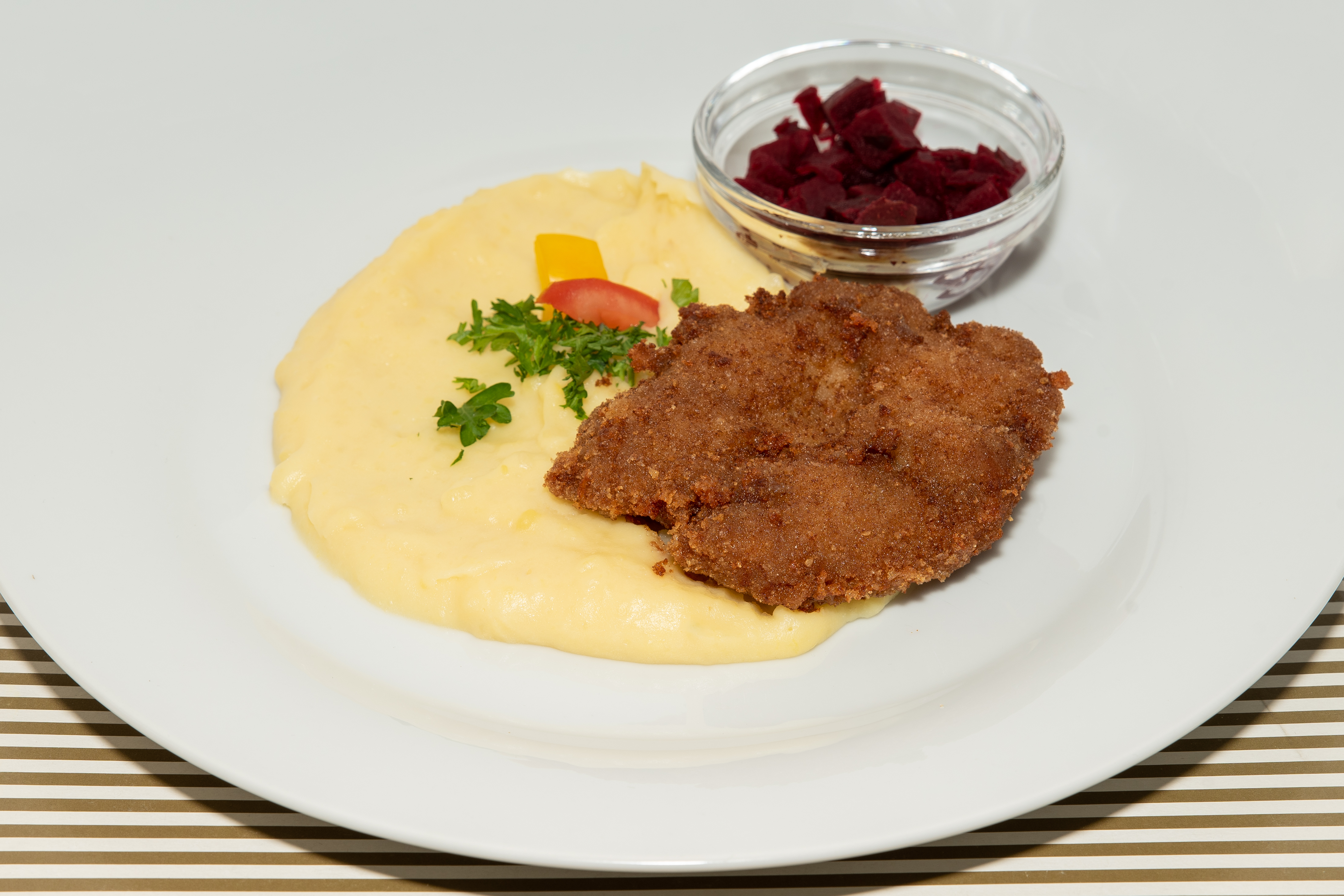 Smažený holandský řízek, bramborová kaše * 1,3,7