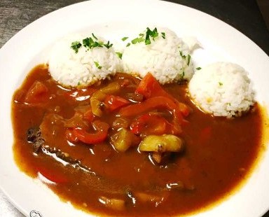 Cikánská hovězí pečeně s rýží.